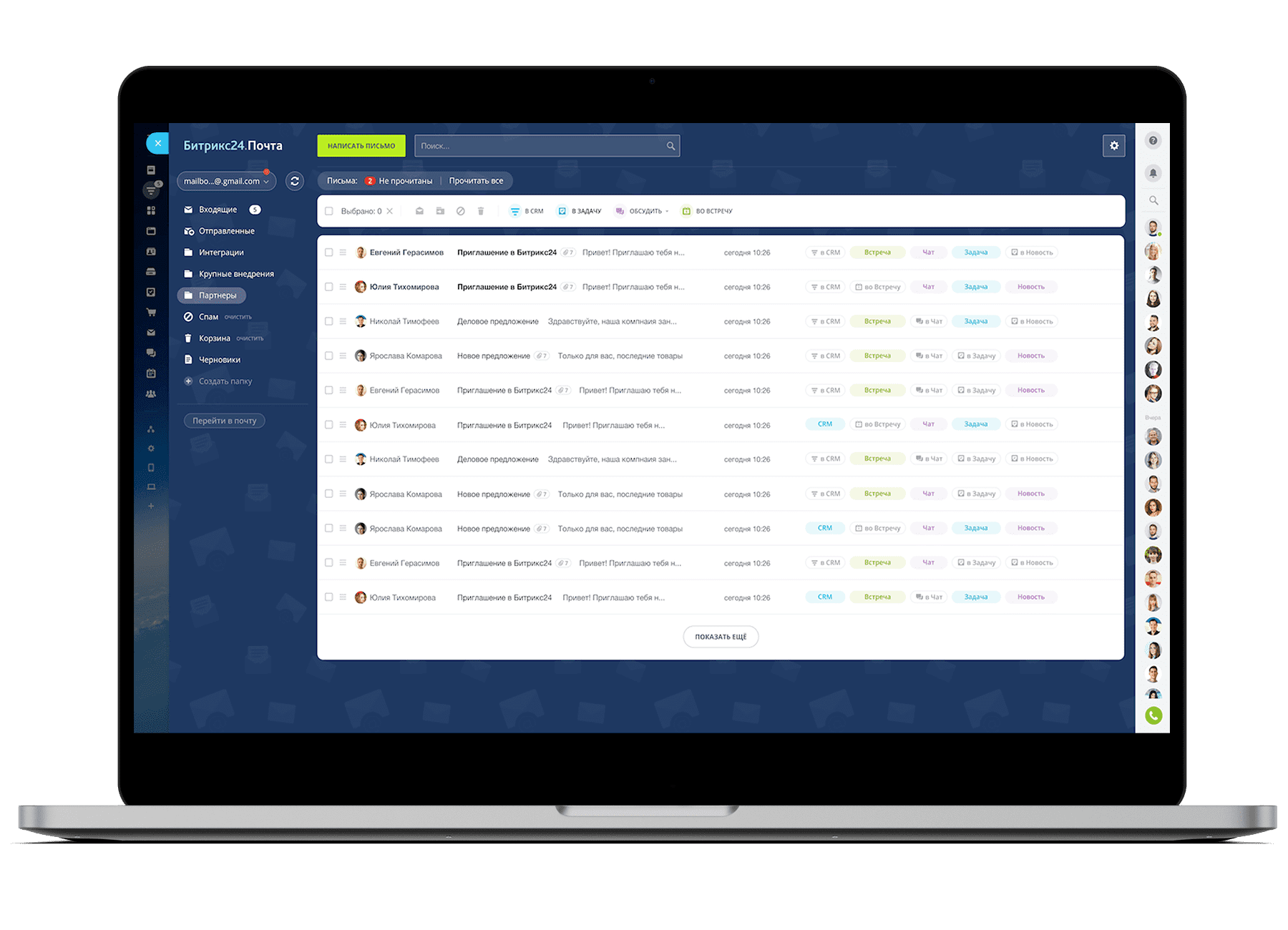 Подключите свой рабочий почтовый ящик к Битрикс24, чтобы упростить совместную работу
